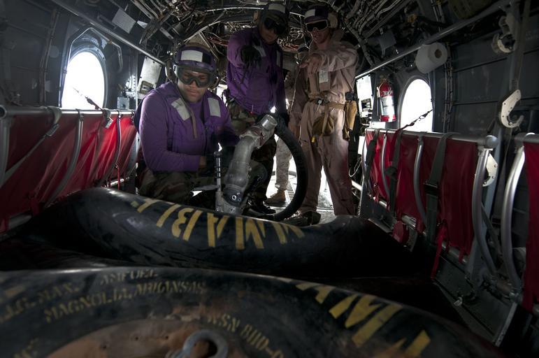 | Keywords: US Navy 120209-N-PB383-157 Aviation Boatswain's Mate (Fuels) Airman Edwin Montanez refills a fuel bag inside a CH-46E Sea Knight helicopter.jpg en ARABIAN GULF Feb 9 2012 Aviation Boatswain's Mate Fuels Airman Edwin Montanez refills a fuel bag inside a CH-46E Sea Knight helicopter assigned to the Red Dragons of Marine Medium Helicopter Squadron 268 Reinforced on the flight deck of the amphibious transport dock ship USS New Orleans LPD 18 New Orleans and embarked Marines assigned to the 11th Marine Expeditionary Unit 11th MEU are deployed as part of the Makin Island Amphibious Ready Group supporting maritime security operations and theater security cooperation efforts in the U S 5th Fleet area of responsibility U S Navy photo by Mass Communication Specialist 2nd Class Dominique Pineiro/Released 2012-02-09 120209-N-PB383-157 Navy http //www navy mil/view_image asp id 115429 U S Navy photo by Mass Communication Specialist 2nd Class Dominique Pineiro PD-USGov-Military-Navy Aboard USS New Orleans LPD-18 |