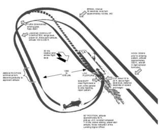 | Keywords: US Navy aircraft carrier landing in WWII diagram.jpg Diagram showing the landing pattern of U S Navy aircraft carriers during the Second World War The aircraft carrier depicted is the Independence-class light carrier USS Belleau Wood CVL-24 U S Navy Naval Air Warfare Division Patuxent River Maryland USA report NAWCADPAX/TR-2002/71 Review of the Carrier Approach Criteria for Carrier -based Aircraft p 8 http //www aoe vt edu/~durham/2002-71 pdf 2002 USN PD-USGov-Military-Navy Aircraft carrier landings Landing Signal Officer |