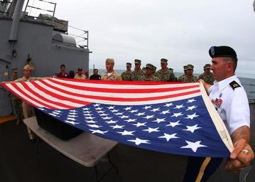 Keywords: US Navy divers search for the remains of 5 un-accounted for service members from 1942 120802-N-OT964-118.jpg en Service members assigned to Mobile Diving and Salvage Unit 2 and the Joint POW/MIA Accounting Command conduct a re-patriation ceremony at-sea for the remains of unaccounted-for service members that were recovered during a diving operation off the coast of Longue Pointe De Mignan Quebec A 50-person recovery team from JPAC MDSU 2 and civilian mariners from the USNS Grapple T-ARS 53 conducted underwater excavations searching for five Americans that were lost when their PBY-5A aircraft crashed in November 1942 JPAC conducts global search recovery and laboratory operations to identify unaccounted-for Americans from past conflicts in order to support the Department of Defense's personnel accounting efforts 2012-08-02 Petty Officer 2nd Class Martin Carey https //www dvidshub net/image/645113 120802-N-OT964-118 2012-08-14 13 04 GULF OF ST LAWRENCE QC CA PD-USGov-Military-Navy United States Navy Mobile Diving and Salvage Unit Two Images from DoD uploaded by Fæ