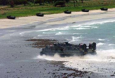| Keywords: US Navy 020528-N-0401E-013 Cobra Gold - LCAC.jpg en Hat Yao Beach Thailand May 28 2002 -- U S Navy Landing Craft Air Cushion LCAC Six One prepares to land on Hat Yao Beach to off-load armed equipment while under the protection of the Royal Thai Marine Corps Amphibious Assault Vehicles AAVs during Cobra Gold 2002 Cobra Gold 2002 is the 21st U S Pacific Command exercise conducted in Thailand demonstrating the ability of U S Forces to rapidly deploy and conduct Joint-combined operations with the Thai and Singaporean armed forces U S Navy photo by Journalist 3rd Class Wes Eplen RELEASED 2002-05-28 020528-N-0401E-013 Navy http //www navy mil/view_image asp id 1687 U S Navy photo by Journalist 3rd Class Wes Eplen PD-USGov-Military-Navy Hat Yao Chonburi Province Cobra Gold 2002 LCAC-56 ship 1993 Amphibious Assault Vehicle Taken with Fujifilm FinePix S1 Pro May 2002 photographs May 2002 in Asia 28 May United States Marine Corps training |