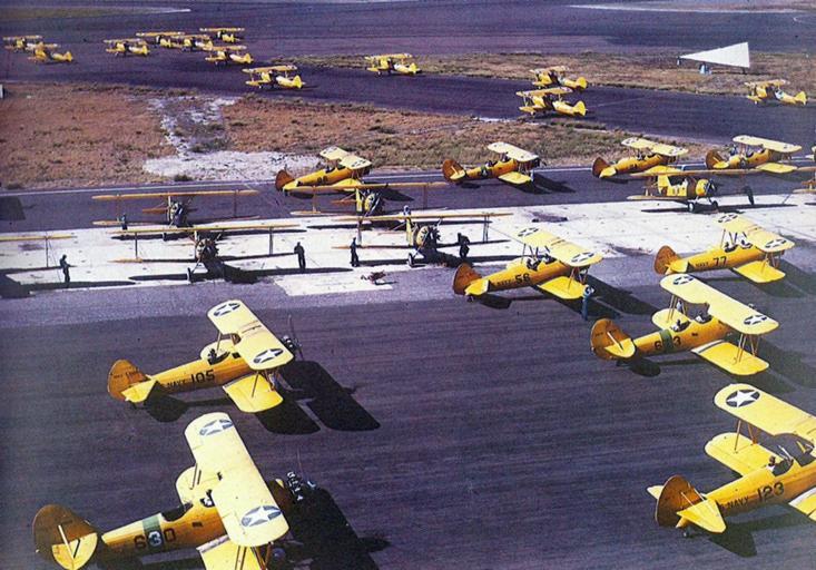 | Keywords: US Navy trainers NAS Corpus Christi 1943.jpg A U S Navy primary flight training planes at the Naval Air Station Corpus Christi Texas USA 1943 The aircraft are either Naval Aircraft Factory N3N Canarys with red fuselage band or Stearman N2S Kaydets scan from Jeffrey J Ethell American Warplanes World War II - Korea Volume II Arms and Armour Press London 1983 p 17 ISBN 0853685770 1943 marked as United States Navy photo frame removed PD-USGov-Military-Navy Naval Aircraft Factory N3N Stearman N2S Naval Air Station Corpus Christi 1943 in Texas Yellow aircraft World War II color photographs of the US Homefront |