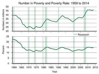 Keywords: US Poverty.svg en Number in poverty and poverty rate in the United States from 1959 to 2014 Data from https //www census gov/content/dam/Census/library/publications/2015/demo/p60-252 pdf US Census Table B-1 pg 44 own Delphi234 2016-05-14 current annually Generated with Wikimedia SVG Chart SVG Chart/box Cc-zero Poverty in the United States