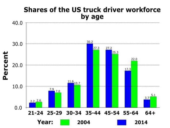 Keywords: US truck driver workforce by age.svg en Shares of the United States truck driver workforce by age current and projected 2004-2014 Own ErgoSum88 2009-06-23 File Truck_driver_workforce_by_age PNG Trucks in the United States