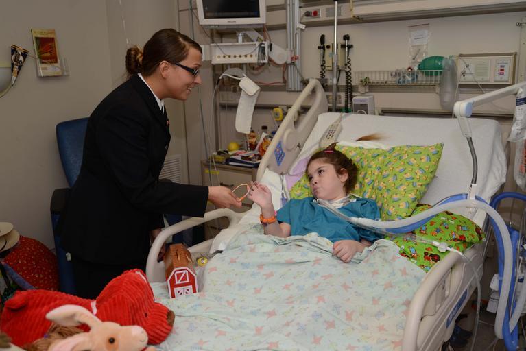 | Keywords: USS Abraham Lincoln namesake visit 140404-N-GM095-120.jpg en Engineman 3rd Class Katie Standish assigned to Nimitz-class aircraft carrier USS Abraham Lincoln CVN 72 receives a band from Tess Drainer a patient at St John ™s Children ™s Hospital April 3 in Springfield Ill Lincoln Sailors are visiting Springfield for a namesake visit to learn more about President Abraham Lincoln's history and to share experiences about life aboard Lincoln with Springfield citizens Photo by Mass Communication Specialist 2nd Class Rusty Pang 2014-04-04 Petty Officer 2nd Class Rusty Pang https //www dvidshub net/image/1228948 140404-N-GM095-120 2014-04-07 07 33 SPRINGFIELD IL US PD-USGov-Military-Navy USS Abraham Lincoln CVN-72 Images from DoD uploaded by Fæ |