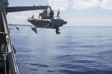 | Keywords: USS Anchorage operations 151104-N-GG858-002.jpg  en 151104-N-GG858-002 INDIAN OCEAN Nov 4 2015 Sailors assigned to San Antonio-class amphibious transport dock ship USS Anchorage LPD 23 are lowered into the Indian Ocean by crane in an 11-meter rigid inflatable boat RIB to give aid to stranded Sri Lankan fishing vessel M/V Lakshan Lakshan became stranded because of engine problems flagging down Anchorage that had been passing by Anchorage rendered aid to the crew providing food and water M/V Beyanara was dispatched and arrived the following day to take over assistance of the Lakshan Anchorage is part of the Essex Amphibious Ready Group and with the embarked 15th Marine Expeditionary Unit 15th MEU is currently operating in the U S 7th Fleet area of responsibility U S Navy photo by Mass Communications Specialist 2nd Class Matthew Dickinson/Released Unit Navy Media Content Services DVIDS Tags NMCS; DVIDS Bulk Import 2015-11-05 Petty Officer 2nd Class Matthew Dickinson https //www dvidshub net/image/2271298/uss-anchorage-operations 151104-N-GG858-002 2015-11-06 03 14 USS ANCHORAGE INDIAN OCEAN PD-USGov-Military-Navy 15th Marine Expeditionary Unit USS Anchorage LPD-23 Images from DoD uploaded by Fæ |