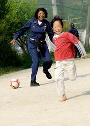 | Keywords: USS Blue Ridge in Japan DVIDS275750.jpg en Chief Petty Officer Roszetta Dean yeoman assigned to U S 7th Fleet staff embarked aboard the U S 7th Fleet command ship USS Blue Ridge plays kickball with a child at the Kodomono-ie Children's Home during a community relations project Blue Ridge is in Hakata on a scheduled port visit 2010-05-02 U S Navy photo by Petty Officer 3rd Class Fidel C Hart mass communication specialist https //www dvidshub net/image/275750 100502-N-+++++-232 2010-05-04 21 41 FUKUOKA JP PD-USGov-Military-Navy USS Blue Ridge LCC-19 Images from DoD uploaded by Fæ |