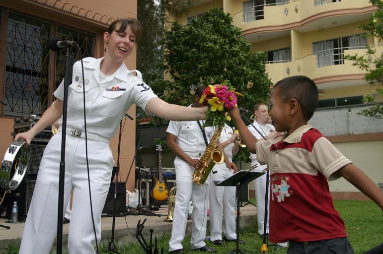 | Keywords: USS Blue Ridge Sailors visit with Thai children DVIDS88134.jpg en Petty Officer 3rd Class Nina M Church receives a flower from a child attending a U S 7th Fleet Band performance at the Fountain of Life Center Church and other members of the band are embarked aboard the amphibious command ship USS Blue Ridge and performed a series of concerts during a port visit to Laem Chabang Thailand 2008-05-02 U S Navy photo/Petty Officer 2nd Class Jesse Carmona https //www dvidshub net/image/88134 080502-N-+++++-003 2008-05-12 22 21 PATTAYA TH PD-USGov-Military-Navy Pattaya USS Blue Ridge LCC-19 Images from DoD uploaded by Fæ Flowers in Thailand |