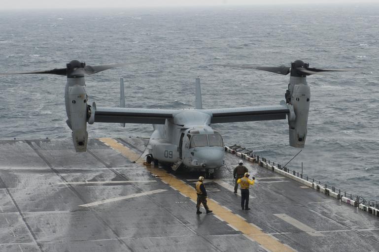 Keywords: USS Bonhomme Richard 140419-N-LM312-019.jpg en An MV-22 Osprey tiltrotor aircraft assigned to Marine Medium Tiltrotor Squadron VMM 265 Reinforced prepares to take off from the flight deck of the forward-deployed amphibious assault ship USS Bonhomme Richard LHD 6 to conduct search and rescue operations in support of the sunken ferry Sewol Sailors and Marines aboard Bonhomme Richard are assisting in search and rescue operations as requested by the Republic of Korea navy near the scene of the sunken ferry Sewol in the vicinity of the island Jindo U S Navy photo by Mass Communication Specialist 2nd Class Adam D Wainwright/Released 2014-04-17 Petty Officer 2nd Class Adam Wainwright https //www dvidshub net/image/1260337 140419-N-LM312-019 2014-04-19 10 32 USS BONHOMME RICHARD AT SEA PD-USGov-Military-Navy MV-22B Osprey USS Bonhomme Richard LHD-6 Images from DoD uploaded by Fæ |