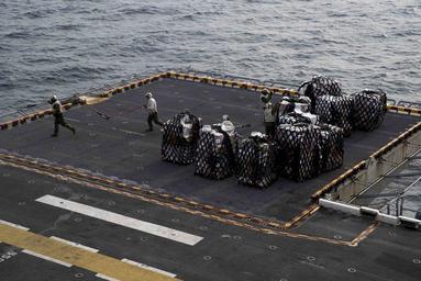 Keywords: USS Bonhomme Richard 160316-N-RU971-266.jpg en 160316-N-RU971-266EAST SEA March 16 2016 Combat Cargo Marines remove nets from cargo during a vertical replenishment aboard amphibious assault ship USS Bonhomme Richard LHD 6 Bonhomme Richard is the flagship of the Bonhomme Richard Expeditionary Strike Group and is participating in Exercise Ssang Yong 2016 a biennial combined amphibious exercise conducted by forward-deployed U S forces with the Republic of Korea Navy and Marine Corps Australian Army and Royal New Zealand Army Forces in order to strengthen our interoperability and working relationships across a wide range of military operations - from disaster relief to complex expeditionary operations U S Navy photo by Mass Communications Specialist 3rd Class Cameron McCulloch/Released <br>Unit USS Bonhomme Richard LHD 6 2016-03-16 Petty Officer 3rd Class Cameron McCulloch https //www dvidshub net/image/2467126/uss-bonhomme-richard 160316-N-RU971-266 2016-03-16 17 11 USS BONHOMME RICHARD EAST CHINA SEA PD-USGov-Military-Navy USS Bonhomme Richard LHD-6 Images from DoD uploaded by FĂŚ |