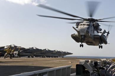 | Keywords: USS Bonhomme Richard flight operations 121014-N-KB563-207.jpg  en An aviation boatswain's mate handling gives the signal for takeoff to a CH-53E Sea Stallion helicopter from Marine Medium Helicopter Squadron HMM 262 Flying Tigers during flight operations aboard the forward-deployed amphibious assault ship USS Bonhomme Richard LHD 6 Bonhomme Richard is currently participating in Amphibious Landing Exercise PHIBLEX PHIBLEX is an annual bilateral exercise held in conjunction with the armed forces of the Philippines and is designed to improve interoperability increase readiness and develop professional and personal relationships between U S and Philippine forces Bonhomme Richard is the lead ship of the only forward-deployed amphibious ready group and is operating in the U S 7th Fleet area of responsibility 2012-10-14 Petty Officer 2nd Class Michael Russell https //www dvidshub net/image/722489 121014-N-KB563-207 2012-10-15 04 15 SOUTH CHINA SEA AT SEA PD-USGov-Military-Navy USS Bonhomme Richard LHD-6 Images from DoD uploaded by Fæ |