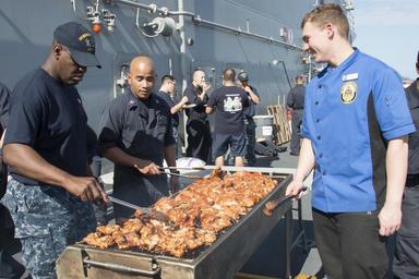 | Keywords: USS Bonhomme Richard Fourth of July 'steel beach' picnic 150704-N-AY934-087.jpg en 150704-N-AY934-087 INDIAN OCEAN July 4 2015 Sailors prepare barbecue chicken for the Fourth of July steel beach picnic on the flight deck of the forward-deployed amphibious assault ship USS Bonhomme Richard LHD 6 Bonhomme Richard is the lead ship of the Bonhomme Richard Expeditionary Strike Group and is on patrol in the U S 7th Fleet area of operations U S Navy photo by Mass Communication Specialist 2nd Class Naomi VanDuser/ Released Unit USS Bonhomme Richard LHD 6 DVIDS Tags USS Bonhomme Richard; U S Navy; Independence Day; Fourth Of July; DVIDS Frontpage 2015-07-04 Petty Officer 3rd Class Naomi VanDuser https //www dvidshub net/image/2044251/uss-bonhomme-richard-fourth-july-steel-beach-picnic 150704-N-AY934-087 2015-07-04 11 03 USS BONHOMME RICHARD INDIAN OCEAN PD-USGov-Military-Navy USS Bonhomme Richard LHD-6 Images from DoD uploaded by FĂŚ |