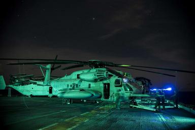 | Keywords: USS Bonhomme Richard (LHD-6) CH-53E night maintenance 160921-N-XK809-059.jpg  en 160921-N-XK809-059 PHILIPPINE SEA Sept 21 2016 Marines assigned to the Flying Tigers of Marine Medium Tiltrotor Squadron VMM 262 conduct maintenance on a CH-53E Super Stallion aboard amphibious assault ship USS Bonhomme Richard LHD 6 as part of Valiant Shield 2016 VS16 VS16 is a biennial U S -only field training exercise FTX with a focus on integration of joint training among U S forces This training enables real-world proficiency in sustaining joint forces through detecting locating tracking and engaging units at sea in the air on land and in cyberspace in response to a range of mission areas Bonhomme Richard flagship of the Bonhomme Richard Expeditionary Strike Group is operating in the Philippine Sea in support of security and stability in the Indo-Asia Pacific region Bonhomme Richard flagship of the Bonhomme Richard Expeditionary Strike Group is operating in the Philippine Sea in support of security and stability in the Indo-Asia Pacific region U S Navy photo by Mass Communication Specialist 3rd Class William Sykes/Released <br>Unit Navy Media Content Services 2016-09-21 Petty Officer 3rd Class William Sykes https //www dvidshub net/image/2874477/uss-bonhomme-richard-lhd-6-ch-53e-night-maintenance 160921-N-XK809-059 2016-09-23 00 16 PHILIPPINE SEA PD-USGov-Military-Navy Sikorsky CH-53E Super Stallion USS Bonhomme Richard LHD-6 Images from DoD uploaded by Fæ |
