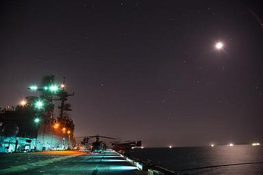 | Keywords: USS Bonhomme Richard operations 150326-N-GG858-018.jpg en 150326-N-GG858-018 WATERS EAST OF THE KOREAN PENINSULA March 26 2015 Forward-deployed amphibious assault ship USS Bonhomme Richard LHD 6 steams through the East China Sea at night Bonhomme Richard is the lead ship of the Bonhomme Richard Amphibious Ready Group ARG and along with the embarked 31st Marine Expeditionary Unit MEU is currently underway in the 7th Fleet Area of Operations U S Navy photo by Mass Communication Specialist 2nd Class Matthew Dickinson/ Released 2015-03-26 Petty Officer 2nd Class Matthew Dickinson https //www dvidshub net/image/1842372 150326-N-GG858-018 2015-03-27 21 36 USS BONHOMME RICHARD WATERS EAST OF THE KOREAN PENINSULA AT SEA PD-USGov-Military-Navy 31st Marine Expeditionary Unit USS Bonhomme Richard LHD-6 Images from DoD uploaded by FĂŚ |