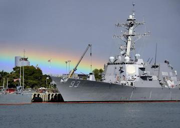 Keywords: USS Chung-Hoon docked at Joint Base Pearl Harbor-Hickam 120531-N-RI884-002.jpg en The Arleigh-burke class guided-missile destroyer USS Chung-Hoon DDG 93 is docked at Joint Base Pearl Harbor-Hickam after a rain shower Chung-Hoon is the first ship in the U S Navy named after Navy Rear Adm Gordon P Chung-Hoon who was born in Hawaii U S Navy photo by Mass Communication Specialist 2nd Class Daniel Barker 2012-05-31 Petty Officer 2nd Class Daniel Barker https //www dvidshub net/image/592279 120531-N-RI884-002 2012-06-01 23 50 PEARL HARBOR HI US PD-USGov-Military-Navy 2012 in Pearl Harbor Rainbows in Hawaii USS Chung-Hoon DDG-93 at Pearl Harbor USS Chung-Hoon DDG-93 Images from DoD uploaded by Fæ |