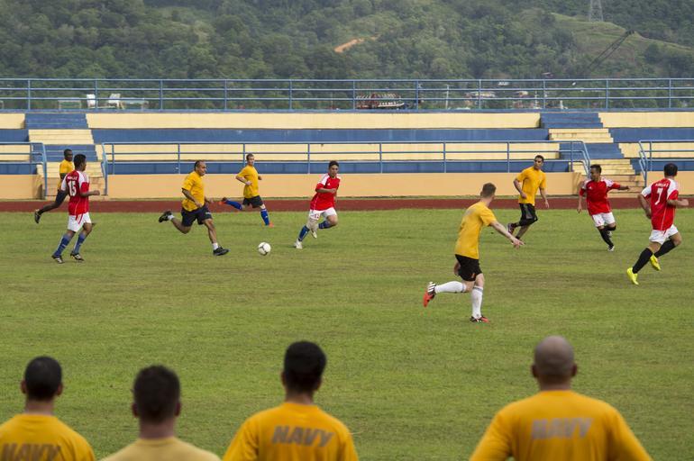 | Keywords: USS Comstock Sailors, 11th MEU Marines play soccer with Royal Malaysian Navy 150127-N-CU914-425.jpg en Sailors and Marines assigned to the dock landing ship USS Comstock LSD 45 and 11th Marine Expeditionary Unit MEU play a game of soccer against the Royal Malaysian Navy during a port visit Comstock part of the Makin Island Amphibious Ready Group is on a deployment with the 11th MEU to promote peace and freedom of the seas by providing security and stability in the U S 7th Fleet area of operations U S Navy photo by Mass Communication Specialist 3rd Class Lenny LaCrosse/Released 2015-01-27 Petty Officer 3rd Class Lenny LaCrosse https //www dvidshub net/image/1742283 150127-N-CU914-425 2015-01-29 20 00 SEPANGGAR MY PD-USGov-Military-Navy \s11th Marine Expeditionary Unit USS Comstock LSD-45 Images from DoD uploaded by Fæ |