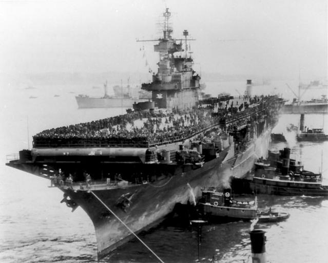 | Keywords: USS Enterprise (CV-6) returns from Azores, January 1946.jpg Enterprise CV-6 docks at Staten Island New York after her last Magic Carpet Voyage 14 January 1946 Aboard were 3557 GI's including 212 WACs who had served as human ballast in an attempt to prevent the transport Athos II from capsizing in an Atlantic gale http //www cv6 org/noumea/default asp uri detail/barr-img-236 cv6 org 1946-01-14 William T Barr US Navy photographer source http //lcweb2 loc gov/cocoon/vhp-stories/loc natlib afc2001001 10509/transcript ID sr0001 PD-USGov-Military-Navy USS Enterprise CV-6 Women's Army Corps 1946 in the United States Operation Magic Carpet World War II |