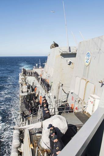 Keywords: USS Farragut Renders Honors 150325-N-VC236-041.jpg en 150325-N-VC236-041 ATLANTIC OCEAN - Sailors assigned to the Arleigh Burke-class guided-missile destroyer USS Farragut stand at attention while passing the Portuguese Navy Vasco Da Gama-class guided-missile frigate NRP Alvares Cabral March 25 2015 Farragut homeported in Mayport Florida is conducting naval operations in the U S 6th Fleet area of operations in support of U S national security interests in Europe 2015-03-25 March 25 2015 https //www dvidshub net/image/1846496 150325-N-VC236-041 2015-03-31 00 00 ATLANTIC OCEAN 3 PD-USGov-Military-Navy USS Farragut DDG-99 Images from DoD uploaded by Fæ