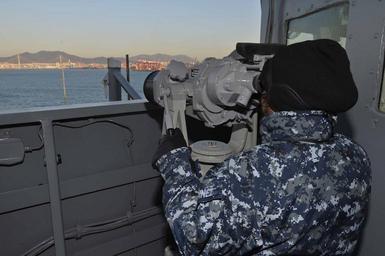 | Keywords: USS Frank Cable operations 150312-N-EV320-015.jpg en BUSAN Republic of Korea - Engineman Fireman Marta Martinez a Sailor assigned to the submarine tender USS Frank Cable looks through the big eyes as the ship pulls into Busan Republic of Korea March 12 Members of the ROK navy welcomed Frank Cable with music performed by their navy's band ensemble and waved the flags of both nations Frank Cable forward deployed to the island of Guam conducts maintenance and support of submarines and surface vessels deployed to the U S 7th Fleet area of responsibility and is currently on a scheduled underway period 2015-03-12 March 12 2015 https //www dvidshub net/image/1812667 150312-N-EV320-015 2015-03-13 00 02 BUSAN KR PD-USGov-Military-Navy USS Frank Cable AS-40 Images from DoD uploaded by Fæ 2015 in Busan Images from US Navy location BUSAN Korea Navy Working Uniform in 2015 |
