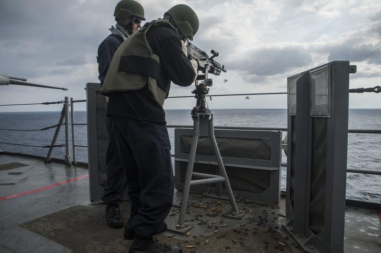 | Keywords: USS Germantown crew-served weapons qualification shoot 141024-N-XM324-330.jpg  en Gunner ™s Mate 2nd Class Andrew Mattson left from Snowflake Ariz supervises as Operations Specialist Seaman Adrian Lopez from Dallas fires an M240B machine gun during a live-fire exercise aboard the amphibious dock landing ship USS Germantown LSD 42 Germantown is part of the Peleliu Amphibious Ready Group PELARG14 commanded by Capt Heidi Agle and is conducting joint forces exercises in the U S 7th Fleet area of responsibility U S Navy photo by Mass Communication Specialist Seaman Patrick Dionne/Released 2014-10-24 Seaman Apprentice Patrick Dionne https //www dvidshub net/image/1628851 141024-N-XM324-330 2014-10-25 12 21 USS GERMANTOWN AT SEA PD-USGov-Military-Navy USS Germantown LSD-42 M-240 machine gun Images from DoD uploaded by Fæ |