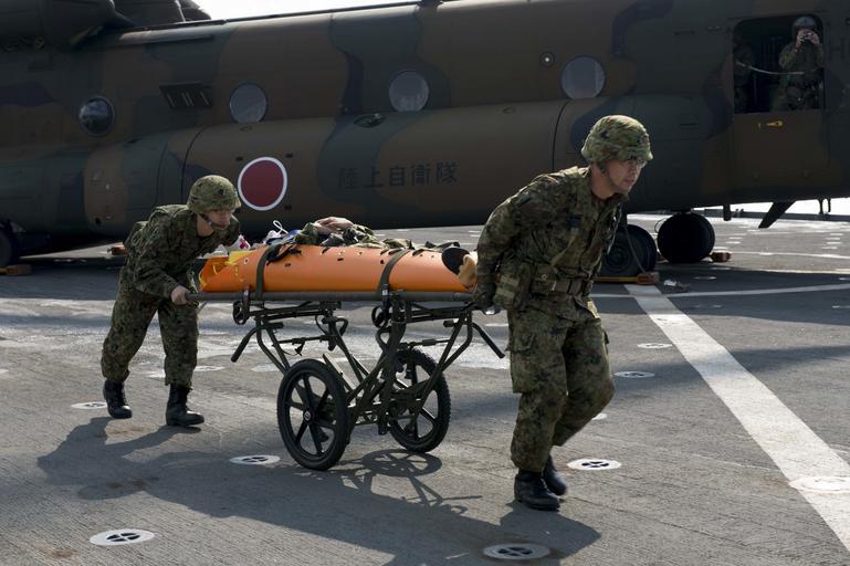 | Keywords: USS Germantown operations 141112-N-UD469-232.jpg en Members of the Japanese Ground Self Defense Force JGSDF carry a simulated injured patient from a JGSDF CH-47 Chinook to the medical ward of the amphibious dock landing ship USS Germantown LSD 42 during a Medical Evacuation MEDEVAC drill for exercise Keen Sword Exercise Keen Sword is a bilateral field training exercise held biennially since 1986 The exercise is designed to increase the interoperability of U S Forces and the Japanese Self Defense Forces JSDF to effectively and mutually provide for the defense of Japan or respond to a regional crisis or contingency situation in the Asia-Pacific region Germantown is part of the Peleliu Amphibious Ready Group PELARG14 commanded by Capt Heidi Agle and is conducting joint forces exercises in the U S 7th Fleet area of responsibility U S Navy Photo by Mass Communication Specialist 2nd Class Amanda R Gray/Released 2014-11-12 Petty Officer 2nd Class Amanda Gray https //www dvidshub net/image/1658846 141112-N-UD469-232 2014-11-15 02 44 PHILIPPINE SEA PD-USGov-Military-Navy Kawasaki CH-47 USS Germantown LSD-42 Images from DoD uploaded by Fæ |
