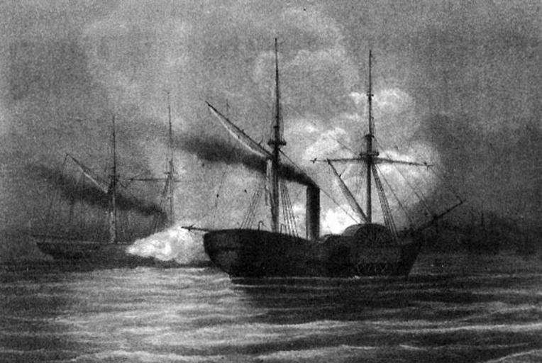 MAKE A MEME View Large Image USS Hatteras.jpg From U S Navy public domain Photo NH 42372 USS Hatteras 1861-1863 -- in center In action with CSS Alabama off Galveston Texas on 11 January 1863 Lithographed by A Hoen Co Baltimore Md Hatteras was sunk in this engagement U ...