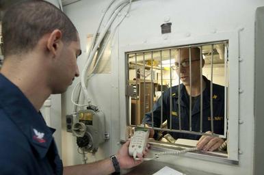 Keywords: USS Hue City 120913-N-NU634-123.jpg en Ensign Jarrett Seibel disbursing officer aboard the guided-missile cruiser USS Hue City credits money to Yeoman 2nd Class Jorge Esparza's Navy Cash Card Hue City is deployed to the U S 5th Fleet area of responsibility conducting maritime security operations theater security cooperation efforts and support missions as part of Operation Enduring Freedom 2012-09-13 CG 66 https //www dvidshub net/image/664887 120913-N-NU634-123 2012-09-15 03 19 U S 5TH FLEET AREA OF OPERATION AT SEA PD-USGov-Military-Navy Operation Enduring Freedom Images from DoD uploaded by Fæ |