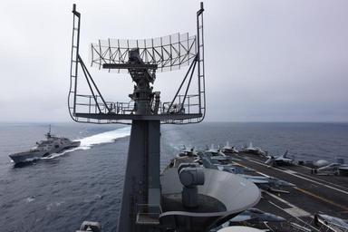 | Keywords: USS John C. Stennis operations 150428-N-GZ947-128.jpg en 150428-N-GZ947-128 PACIFIC OCEAN - Littoral Combat Ship USS Freedom comes alongside USS John C Stennis during a group sail exercise U S Navy ships are underway conducting an Independent Deployer Certification Exercise off the coast of Southern California The exercise provides a multi-ship environment to train and certify independent deployers in surface warfare air defense maritime-interception operations command and control/information warfare command control computers and combat systems intelligence and mine warfare 2015-04-28 April 28 2015 https //www dvidshub net/image/1906953 150428-N-GZ947-128 2015-04-30 14 30 USS JOHN C STENNIS PACIFIC OCEAN PD-USGov-Military-Navy USS John C Stennis CVN-74 Images from DoD uploaded by Fæ |