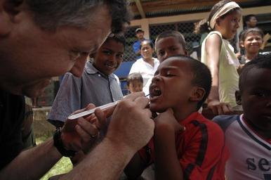 | Keywords: USS Kearsarge in Continuing Promise 2008 DVIDS110399.jpg en U S Public Health Service Lt Cmdr Gary Brunette cleans and applies fluoride to the teeth of a young Nicaraguan boy so the enamel of his teeth can strengthen over time Brunette is embarked aboard the amphibious assault ship USS Kearsarge which is supporting the Caribbean phase of Continuing Promise 2008 an equal-partnership mission between the United States Canada the Netherlands Brazil Nicaragua Panama Colombia Dominican Republic Trinidad and Tobago and Guyana 2008-08-18 Petty Officer 2nd Class Erik Barker https //www dvidshub net/image/110399 080818-N-+++++-009 2008-08-23 19 03 BETANIA NI PD-USGov-Military-Navy USS Kearsarge LHD-3 Images from DoD uploaded by Fæ |