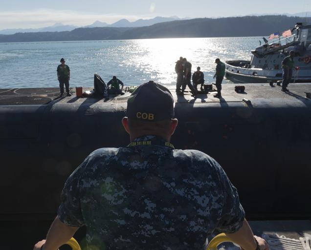 Keywords: USS Maine Returns To Port 160728-N-VZ328-061.jpg en BANGOR Wash July 28 2016 Master Chief Culinary Specialist Kingsley Vanduzer Chief of the Boat for USS Maine SSBN 741 Blue oversees mooring operations during Maine's return to port at Naval Base Kitsap - Bangor Wash This was Maine's last at-sea period before she is scheduled to enter Puget Sound Naval Shipyard to begin her engineered refueling overhaul ERO a process expected to take more than two years to complete U S Navy photo by Chief Mass Communcation Specialist Kenneth G Takada/Released <br>Unit Commander Submarine Group Nine 2016-07-28 Chief Petty Officer Kenneth Takada https //www dvidshub net/image/2756454/uss-maine-returns-port 160728-N-VZ328-061 2016-07-29 18 59 BANGOR WA US PD-USGov-Military-Navy Naval Base Kitsap Images from DoD uploaded by Fæ |