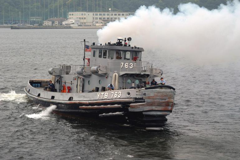 Keywords: USS Muskegon (YTB-763) bow view.jpg Portrait of US Navy USN Harbor Tug USS Muskegon YTB 763 while working alongside a ship at the Naval Base Yokosuka Japan the last base to use an all-Navy crew on the tugs http //www defenseimagery mil/imagery html guid 2da9a23de72e0c29938c3d724e66d0d951d58df0 VIRIN 040513-N-2101W-031 2004-05-13 PH1 ALAN WARNER USN Information presented on DoD Imagery Server is considered public information except where noted for government and military users logged into restricted areas and may be distributed or copied Use of appropriate byline/photo/image credits is requested PD-USGov-Military-Navy USS Muskegon YTB-763 |
