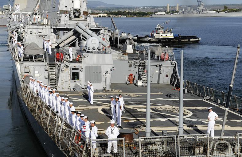 Keywords: USS Paul Hamilton heads out on deployment DVIDS345126.jpg en Sailors assigned to the guided-missile destroyer USS Paul Hamilton man the rails as the ship departs Joint Base Pearl Harbor-Hickam for an independent deployment to the Middle East and western Pacific Ocean Paul Hamilton is deploying under the Middle Pacific Surface Combatant deployment concept in which Hawaii-based ships deploy to support operations in the U S 5th and 7th Fleet areas of responsibility 2010-11-30 Petty Officer 2nd Class Mark Logico https //www dvidshub net/image/345126 101130-N-+++++-012 2010-12-01 17 36 PEARL HARBOR HI US PD-USGov-Military-Navy 2010 in Pearl Harbor USS Paul Hamilton DDG-60 at Pearl Harbor Images from DoD uploaded by Fæ |
