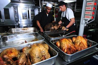 Keywords: USS Pearl Harbor DVIDS343500.jpg en Cpl Omar Forrester and Seaman Jesse Rodriguez a culinary specialist prepare turkeys for Thanksgiving dinner aboard the amphibious dock landing ship USS Pearl Harbor LSD 52 Pearl Harbor is part of the Peleliu Amphibious Ready Group which is transiting the 7th Fleet area of responsibility 2010-11-25 Petty Officer 2nd Class Michael Russell https //www dvidshub net/image/343500 101125-N-+++++-157 2010-11-25 22 44 ABOARD USS PEARL HARBOR AT SEA PD-USGov-Military-Navy USS Pearl Harbor LSD-52 Images from DoD uploaded by Fæ |