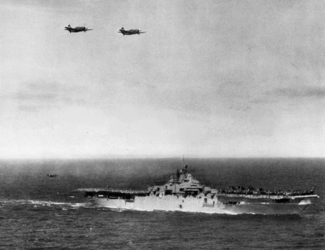 | Keywords: USS Philippine Sea (CV-47) with SB2Cs in 1948.jpg  Two U S Navy Curtiss SB2C-5 Helldiver of Attack Squadron VA-9A Tough Kitties flying over the aircaft carrier USS Philippine Sea CV-47 VA-9A was assigned to Carrier Air Group 9 CVAG-9 aboard the Philippine Sea for a deployment to the Mediterranean Sea from 9 February to 26 June 1948 U S Navy photo http //navysite de/cruisebooks/cv47-48/000 htm from the http //navysite de/cruisebooks/cv47-48/index_001 htm USS Philippine Sea CV-47 1946-48 cruise book available at http //navysite de/cruisebooks/index html Navysite de 1948 USN PD-USGov-Military-Navy Curtiss SB2C Helldiver Strike Fighter Squadron 94 United States Navy USS Philippine Sea CV-47  |