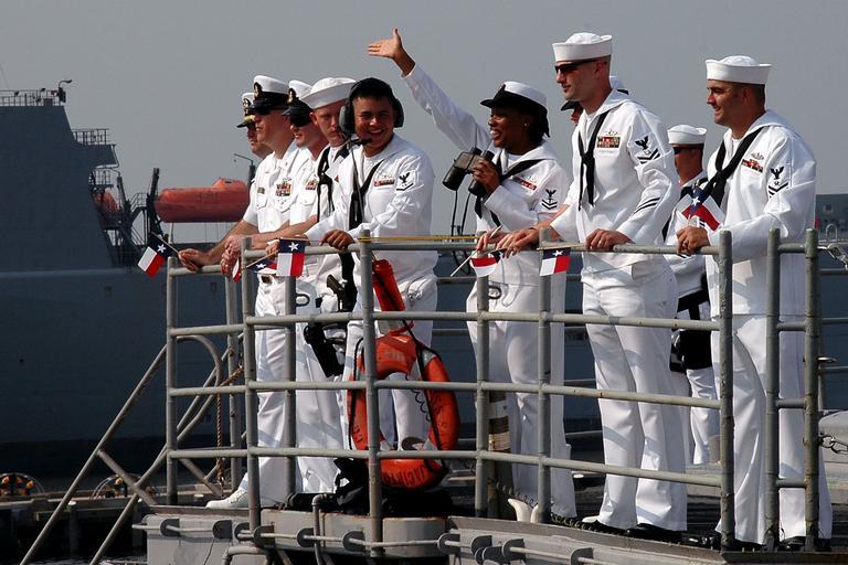 | Keywords: USS San Jacinto DVIDS309280.jpg en Sailors aboard the guided-missile cruiser USS San Jacinto wave to family and friends as the ship arrives at Naval Station Norfolk after a seven-month deployment to the U S 5th and 6th Fleet areas of responsibility San Jacinto conducted counter-piracy operations assisted two merchant ships with medical evacuations and crew members completed six community relief events at schools and retirement homes San Jacinto also participated in multi-national exercises with Australia South Korea Pakistan Israel Greece Jordan and Great Britain 2010-08-11 Petty Officer 1st Class Julie Matyascik https //www dvidshub net/image/309280 100811-N-+++++-454 2010-08-14 08 44 NORFOLK VA US PD-USGov-Military-Navy Naval Station Norfolk Images from DoD uploaded by Fæ |