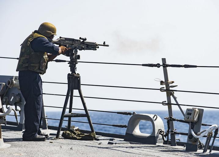 Keywords: USS STOUT (DDG 55) DEPLOYMENT 2016 161015-N-GP524-067.jpg en 161015-N-GP524-067 ARABIAN GULF Oct 15 2016 Seaman Jarrod Johnson fires an M240-B machine gun from aboard the guided-missile destroyer USS Stout DDG 55 during a live-fire exercise Johnson serves as a gunner ™s mate on board Stout and is also a member of the small craft attack team Stout deployed as part of the Eisenhower Carrier Strike Group is supporting maritime security operations and theater security cooperation efforts in the U S 5th Fleet area of operations U S Navy photo by Petty Officer 3rd Class Bill Dodge Unit Navy Media Content Services DVIDS Tags SAR; Search and Rescue; formation; ocean; transit; Bahrain; RAS; USNS Pecos ; GQ; general quarters; Arleigh Burke-class; America; underway; CIWS; 6th Fleet; guided-missile destroyer; Manama ; forward deployed; Memorial Day; USS Stout DDG 55 ; ship; SUEZ CANAL; Navy; COMREL; Sailor; community relations; destroyer; replenishment-at-sea; U S Navy; 5th Fleet; deployment; MC; Stout; USS Stout; DDG 55; Lt Michael Murphy; NMCS; DVIDS Bulk Import; Mass Communication Specialist 3rd Class Bill Dodge; MC3 Bill Dodge; Murph Challenge; ARGONAUT 2016; Sailors giving back 2016-10-15 Petty Officer 3rd Class William Dodge https //www dvidshub net/image/2927319/uss-stout-ddg-55-deployment-2016 161015-N-GP524-067 2016-10-18 00 31 PERSIAN GULF PD-USGov-Military-Navy Manama USS Stout DDG-55 Images from DoD uploaded by Fæ |