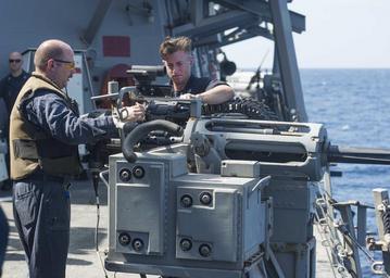 Keywords: USS STOUT (DDG 55) DEPLOYMENT 2016 161015-N-GP524-093.jpg en 161015-N-GP524-093 ARABIAN GULF Oct 15 2016 Petty Officer 1st Class Robert Deck left and Petty Officer 3rd Class Andrew Chodkowski conduct maintenance on a 25mm machine gun aboard the guided-missile destroyer USS Stout DDG 55 Stout deployed as part of the Eisenhower Carrier Strike Group is supporting maritime security operations and theater security cooperation efforts in the U S 5th Fleet area of operations U S Navy photo by Petty Officer 3rd Class Bill Dodge Unit Navy Media Content Services DVIDS Tags SAR; Search and Rescue; formation; ocean; transit; Bahrain; RAS; USNS Pecos ; GQ; general quarters; Arleigh Burke-class; America; underway; CIWS; 6th Fleet; guided-missile destroyer; Manama ; forward deployed; Memorial Day; USS Stout DDG 55 ; ship; SUEZ CANAL; Navy; COMREL; Sailor; community relations; destroyer; replenishment-at-sea; U S Navy; 5th Fleet; deployment; MC; Stout; USS Stout; DDG 55; Lt Michael Murphy; NMCS; DVIDS Bulk Import; Mass Communication Specialist 3rd Class Bill Dodge; MC3 Bill Dodge; Murph Challenge; ARGONAUT 2016; Sailors giving back 2016-10-15 Petty Officer 3rd Class William Dodge https //www dvidshub net/image/2927130/uss-stout-ddg-55-deployment-2016 161015-N-GP524-093 2016-10-18 00 23 PERSIAN GULF PD-USGov-Military-Navy Manama USS Stout DDG-55 Images from DoD uploaded by Fæ |