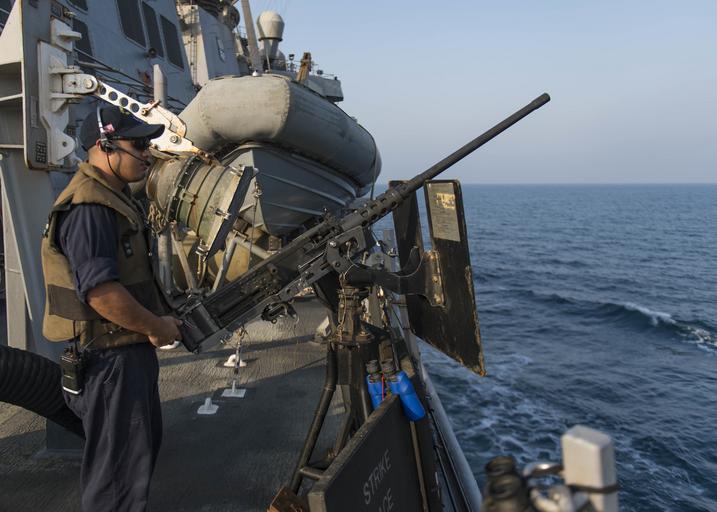 Keywords: USS STOUT (DDG 55) DEPLOYMENT 2016 160825-N-GP524-065.jpg en 160825-N-GP524-065 ARABIAN GULF Aug 25 2016 Sonar Technician Surface 2nd Class Dimetrius Romero mans a 50-caliber machine gun aboard the guided-missile destroyer USS Stout DDG 55 as the ship enters port Stout deployed as part of the Eisenhower Carrier Strike Group is supporting maritime security operations and theater security cooperation efforts in the U S 5th Fleet area of operations U S Navy photo by Mass Communication Specialist 3rd Class Bill Dodge Unit Navy Media Content Services DVIDS Tags SAR; Search and Rescue; formation; ocean; transit; Bahrain; RAS; USNS Pecos ; GQ; general quarters; Arleigh Burke-class; America; underway; CIWS; 6th Fleet; guided-missile destroyer; Manama ; forward deployed; Memorial Day; USS Stout DDG 55 ; ship; SUEZ CANAL; Navy; COMREL; Sailor; community relations; destroyer; replenishment-at-sea; U S Navy; 5th Fleet; deployment; MC; Stout; USS Stout; DDG 55; Lt Michael Murphy; NMCS; DVIDS Bulk Import; Mass Communication Specialist 3rd Class Bill Dodge; MC3 Bill Dodge; Murph Challenge; ARGONAUT 2016; Sailors giving back 2016-08-24 Petty Officer 3rd Class William Dodge https //www dvidshub net/image/2843257/uss-stout-ddg-55-deployment-2016 160825-N-GP524-065 2016-09-10 00 06 PERSIAN GULF PD-USGov-Military-Navy Manama USS Stout DDG-55 Images from DoD uploaded by Fæ |