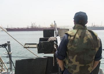 Keywords: USS STOUT (DDG 55) DEPLOYMENT 2016 160801-N-GP524-072.jpg en 160801-N-GP524-072 U S 5TH FLEET AREA OF OPERATIONS Aug 1 2016 Personnel Specialist 2nd Class Jesus Salazar mans a 50-caliber machine gun as the guided-missile destroyer USS Stout DDG 55 departs after a port visit Stout deployed as part of the Eisenhower Carrier Strike Group is supporting Operation Inherent Resolve maritime security operations and theater security cooperation efforts in the U S 5th Fleet area of operations U S Navy photo by Mass Communication Specialist 3rd Class Bill Dodge/Released Unit Navy Media Content Services DVIDS Tags SAR; Search and Rescue; formation; ocean; transit; Bahrain; RAS; USNS Pecos ; GQ; general quarters; Arleigh Burke-class; America; underway; CIWS; 6th Fleet; guided-missile destroyer; Manama ; forward deployed; Memorial Day; USS Stout DDG 55 ; ship; SUEZ CANAL; Navy; COMREL; Sailor; community relations; destroyer; replenishment-at-sea; U S Navy; 5th Fleet; deployment; MC; Stout; USS Stout; DDG 55; Lt Michael Murphy; NMCS; DVIDS Bulk Import; Mass Communication Specialist 3rd Class Bill Dodge; MC3 Bill Dodge; Murph Challenge; ARGONAUT 2016; Sailors giving back 2016-08-01 Petty Officer 3rd Class William Dodge https //www dvidshub net/image/2777554/uss-stout-ddg-55-deployment-2016 160801-N-GP524-072 2016-08-09 00 01 PERSIAN GULF PD-USGov-Military-Navy Manama USS Stout DDG-55 Images from DoD uploaded by Fæ |