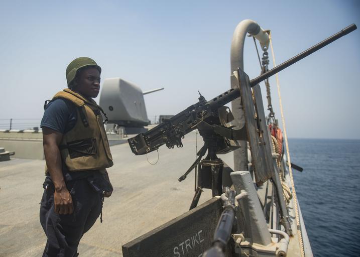 Keywords: USS STOUT (DDG 55) STRAIT OF HORMUZ TRANSIT 160628-N-GP524-036.jpg en 160628-N-GP524-036 STRAIT OF HORMUZ June 28 2016 Ship ™s Serviceman 3rd Class Micky Clarke mans a 50 caliber machine gun aboard USS Stout DDG 55 as the ship transits the Strait of Hormuz Stout an Arleigh Burke class guided-missile destroyer deployed as part of the Eisenhower Carrier Strike Group is supporting Operation Inherent Resolve maritime security operations and theater security operations in the U S 5th Fleet area of operations U S Navy photo by Mass Communication Specialist 3rd Class Bill Dodge/Released Unit Navy Media Content Services DVIDS Tags SAR; Search and Rescue; formation; ocean; transit; Bahrain; RAS; GQ; general quarters; Arleigh Burke-class; America; underway; CIWS; 6th Fleet; guided-missile destroyer; RIA; Manama ; forward deployed; Memorial Day; USS Stout DDG 55 ; ship; SUEZ CANAL; Navy; COMREL; Sailor; community relations; destroyer; replenishment-at-sea; U S Navy; 5th Fleet; deployment; MC; Stout; USS Stout; DDG 55; Lt Michael Murphy; NMCS; DVIDS Bulk Import; Mass Communication Specialist 3rd Class Bill Dodge; MC3 Bill Dodge; Murph Challenge; ARGONAUT 2016; Sailors giving back; Regional Institute of Active Learning 2016-06-28 Petty Officer 3rd Class William Dodge https //www dvidshub net/image/2705882/uss-stout-ddg-55-strait-hormuz-transit 160628-N-GP524-036 2016-07-06 00 01 STRAIT OF HORMUZ PD-USGov-Military-Navy Manama USS Stout DDG-55 Images from DoD uploaded by Fæ |