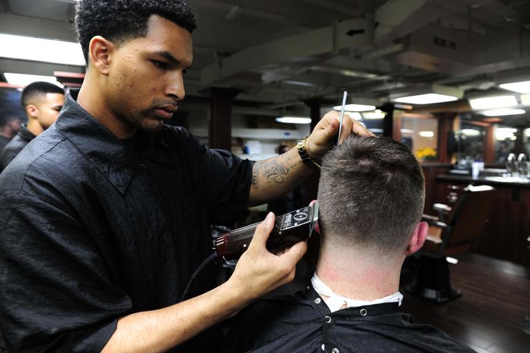 Keywords: USS Theodore Roosevelt 150814-N-PG340-070.jpg en 150814-N-PG340-070 ARABIAN GULF Aug 14 2015 - Ship ™s Serviceman 2nd Class Lacy Thompson from Lumberton N C gives a haircut to Electrician ™s Mate 1st Class David Wrubleski from Spokane Wash in the barber shop aboard the aircraft carrier USS Theodore Roosevelt CVN 71 Theodore Roosevelt is deployed in the U S 5th Fleet area of operations supporting Operation Inherent Resolve strike operations in Iraq and Syria as directed maritime security operations and theater security cooperation efforts in the region U S Navy photo by Mass Communication Specialist 3rd Class Stephane Belcher/Released <br>Unit Navy Media Content Services 2015-08-14 Petty Officer 2nd Class Stephane Belcher https //www dvidshub net/image/2129953/uss-theodore-roosevelt 150814-N-PG340-070 2015-08-19 16 23 USS THEODORE ROOSEVELT PERSIAN GULF PD-USGov-Military-Navy USS Theodore Roosevelt CVN-71 Images from DoD uploaded by Fæ |