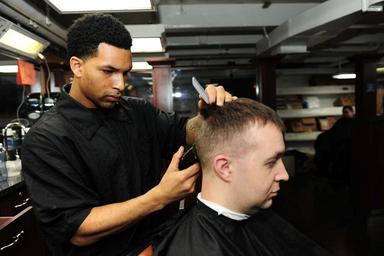 Keywords: USS Theodore Roosevelt 150814-N-PG340-041.jpg en 150814-N-PG340-041 ARABIAN GULF August 14 2015 - Ship ™s Serviceman 2nd Class Lacy Thompson from Lumberton N C gives a haircut to Electrician ™s Mate 1st Class David Wrubleski from Spokane Wash in the barber shop aboard the aircraft carrier USS Theodore Roosevelt CVN 71 Theodore Roosevelt is deployed in the U S 5th Fleet area of operations supporting Operation Inherent Resolve strike operations in Iraq and Syria as directed maritime security operations and theater security cooperation efforts in the region U S Navy photo by Mass Communication Specialist 3rd Class Stephane Belcher/Released <br>Unit Navy Media Content Services 2015-08-14 Petty Officer 2nd Class Stephane Belcher https //www dvidshub net/image/2130589/uss-theodore-roosevelt 150814-N-PG340-041 2015-08-19 12 05 USS THEODORE ROOSEVELT PERSIAN GULF PD-USGov-Military-Navy USS Theodore Roosevelt CVN-71 Images from DoD uploaded by Fæ |