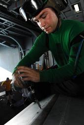 Keywords: USS Theodore Roosevelt operations 150816-N-CQ428-235.jpg en 150816-N-CQ428-235 ARABIAN GULF - Aviation Structural Mechanic 3rd Class Jordan Austin from Renton Wash reinforces the wing flap on a F/A-18E Super Hornet in the hangar bay aboard the aircraft carrier USS Theodore Roosevelt Theodore Roosevelt is deployed in the U S 5th Fleet area of operations supporting Operation Inherent Resolve strike operations in Iraq and Syria as directed maritime security operations and theater security cooperation efforts in the region <br>Unit Navy Media Content Services 2015-08-16 Aug 16 2015 https //www dvidshub net/image/2130427/uss-theodore-roosevelt-operations 150816-N-CQ428-235 2015-08-19 19 27 USS THEODORE ROOSEVELT PERSIAN GULF PD-USGov-Military-Navy F/A-18E Super Hornet USS Theodore Roosevelt CVN-71 Images from DoD uploaded by Fæ |
