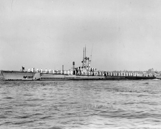 | Keywords: USS Threadfin;0841003.jpg USS Threadfin SS-410 Threadfins sailors dressed in whites line the deck as the boat pulls into port possibly at the naval base at Staten Island N Y 22 Sept 1945 USN photo text courtesy of DANFS http //www navsource org/archives/08/08410 htm PD_USN USS Threadfin SS-410  |