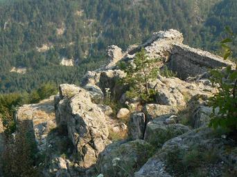 Keywords: Ustra-bottom-walls.JPG Поглед надолу към южните външни стени на к епостта Уст а Родопите Бълга ия Top-down view at the southern outside walls of Ustra fortress Rhodope Mountains Bulgaria Own 2007-08-18 Vassia Atanassova - Spiritia Ustra