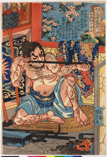 | Keywords: Utagawa Kuniyoshi - 水滸傳 - 湯隆.jpg en Tang Long 湯隆 in his smithy seated on a mat by a fire and anvil inspecting the straightness of an iron bar 1845 1850 http //www britishmuseum org/research/collection_online/collection_object_details aspx objectId 3278078 partId 1 Utagawa Kuniyoshi PD-Art Uploaded with UploadWizard Outlaws of the Water Margin |