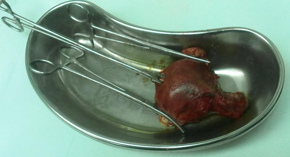Keywords: Uterus 1.jpg fa رحم برداشته شده در بعد از عمل هیسترکتومی لوله های فالوپ و تخمدانها با هنی و فوندوس رحم با تناکولوم 4 شاخ نگه داشته شده اند 2013-10-20 11 48 50 own دماوندی cc-zero Uploaded with UploadWizard Hysterectomy Surgical instruments