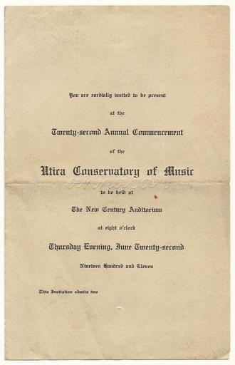 Keywords: Utica Conservatory Invitation 1911 pbmathews Paul Mathews