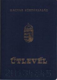 Keywords: Utlevelek.jpg en Old blue Hungarian passport hu Régi kék magyar útlevél de Alte ungarische Reisepass Own scan saját scan eigener Scan xmatadorx 2008-08-26 Passports of Hungary