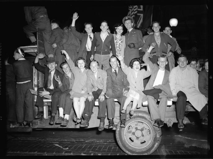 Keywords: vancouver bc 1945 v-e ve day (may may 7) 7 victory europe blackandwhite monochrome black and white V-E Day celebration VPL Accession Number: 42798 Date: May 7, 1945 Photographer / Studio: Province Newspaper Content: Group of young men and women on the back of a truck. Topic: V-E Day, 1945 Location: British Columbia - Vancouver - Downtown More information on our historical photograph collection: www.vpl.ca/historicalphotos V-E Day celebration VPL Accession Number: 42798 Date: May 7, 1945 Photographer / Studio: Province Newspaper Content: Group of young men and women on the back of a truck. Topic: V-E Day, 1945 Location: British Columbia - Vancouver - Downtown More information on our historical photograph collection: www.vpl.ca/historicalphotos |
