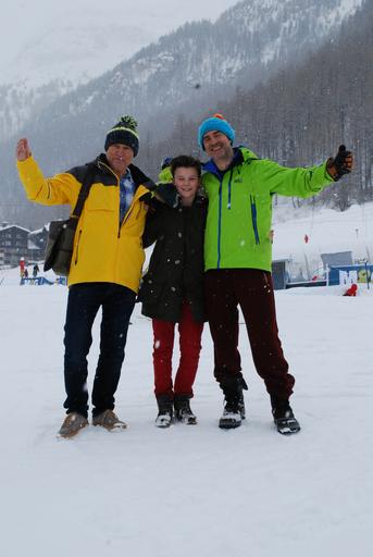 Keywords: valdesere ski vacation family winter france son father granfather grandson male smile happy people